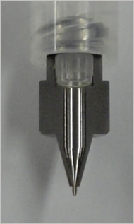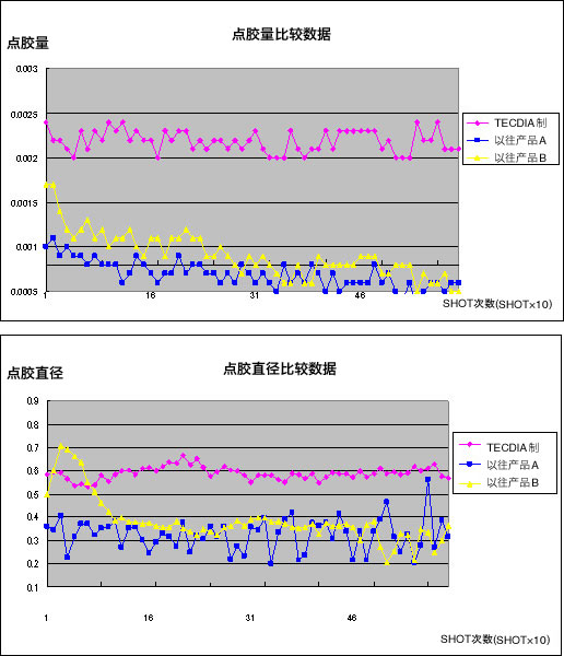 有關(guān)粘合(粘貼)材料內(nèi)發(fā)生的混合比例的瞬間變化,TECDIA通過對調(diào)劑時壓力變化的判斷,認(rèn)為必須解決調(diào)劑時的壓力才是重點(diǎn),然后嘗試開發(fā)出使壓力難以產(chǎn)生的,"可提高材料流動性"的點(diǎn)膠針頭。
