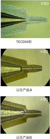 充分發(fā)揮精密加工技術(shù),嘗試細(xì)致的加工,使內(nèi)部的加工達(dá)到與連接針管的口徑一致。加工時必要的刀具也在公司內(nèi)部制作,其加工精度可達(dá)到 0.001mm,成功的減少了流動中材料分離。