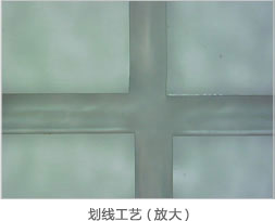 首先,金剛石劃線工具從本公司豐富的劃線工具中選擇錐形的。再加上金剛石研磨技術(shù),更鋒利、更深,得到更清晰的劃線。 并且,在劃線設(shè)備上選擇固體型的劃線方法,再加上加重及速度等各種條件。 |